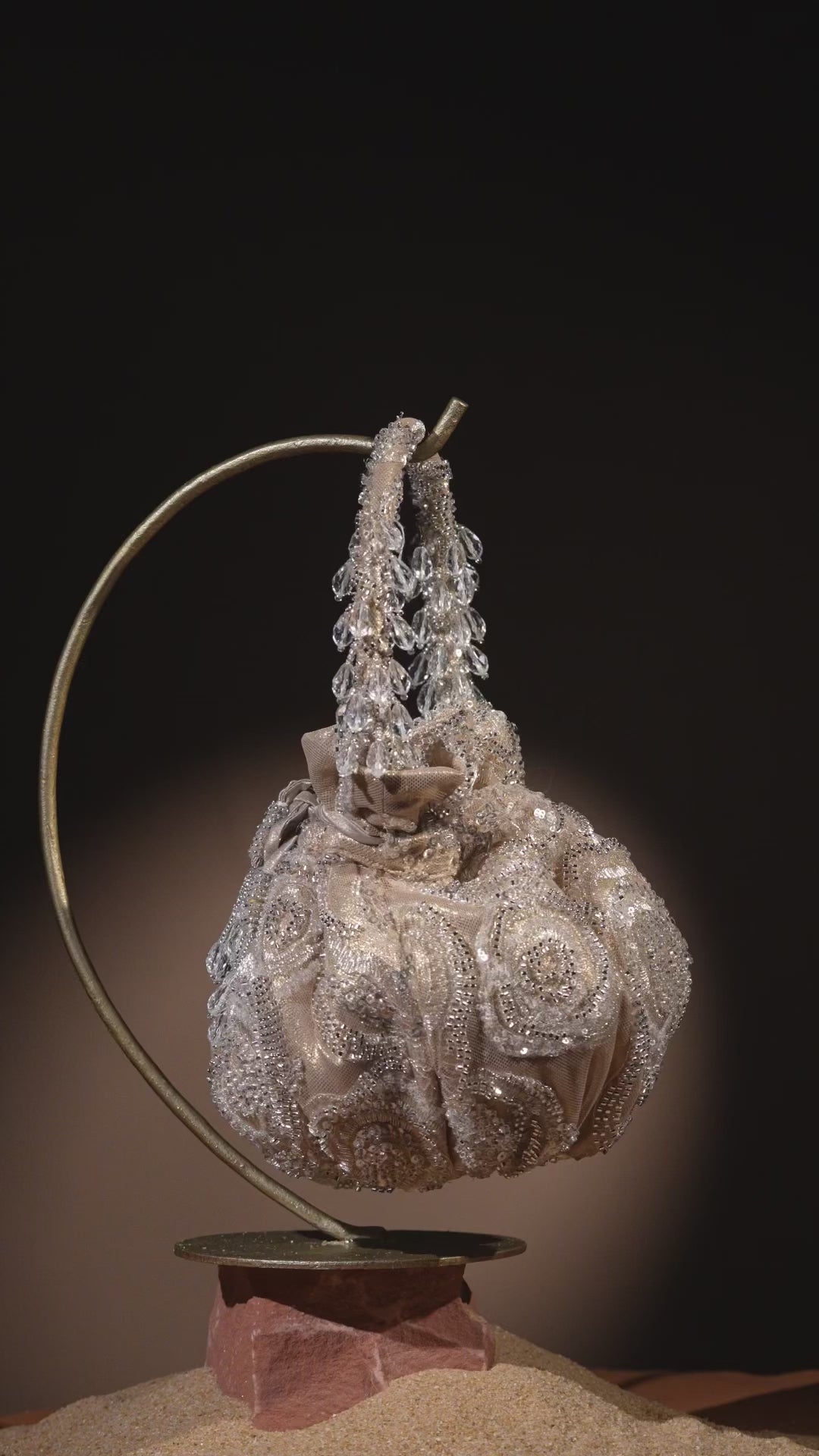 This potli bag is the embodiment of versatility, adorned with both ivory and silver threads. The intricate design combines the opulence of ivory with the understated charm of silver, making it an ideal choice for any occasion. It can fit your phone and other essentials.